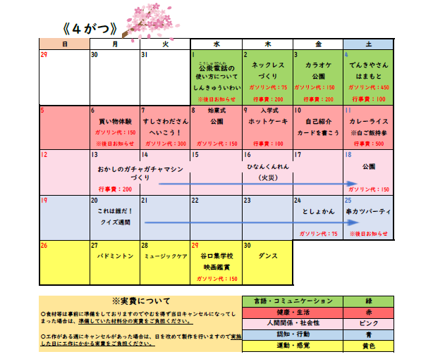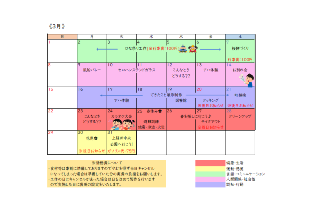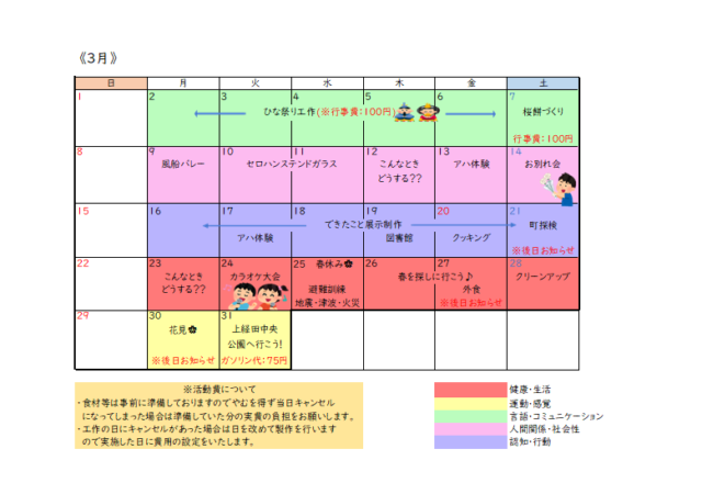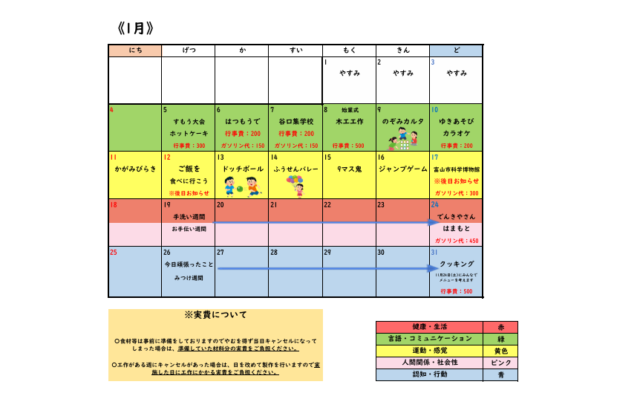 - 学習スペース、運動スペース、団らん(食事)スペース、おトイレ、シャワー脱衣スペース